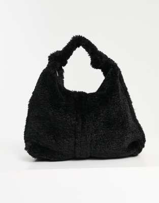 Topshop faux fur shoulder bag in black
