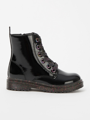 Black Patent Glitter High Top Boots