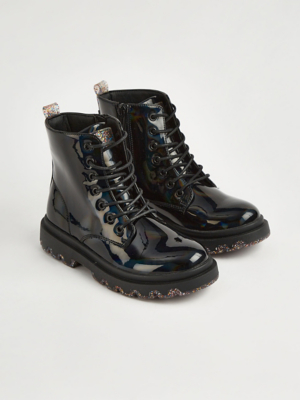 Black Holographic Patent Ankle Boots