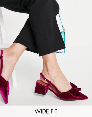 ASOS Design Wide Fit Suzy Bow Slingback Mid Heeled Shoes in Magenta-Purple